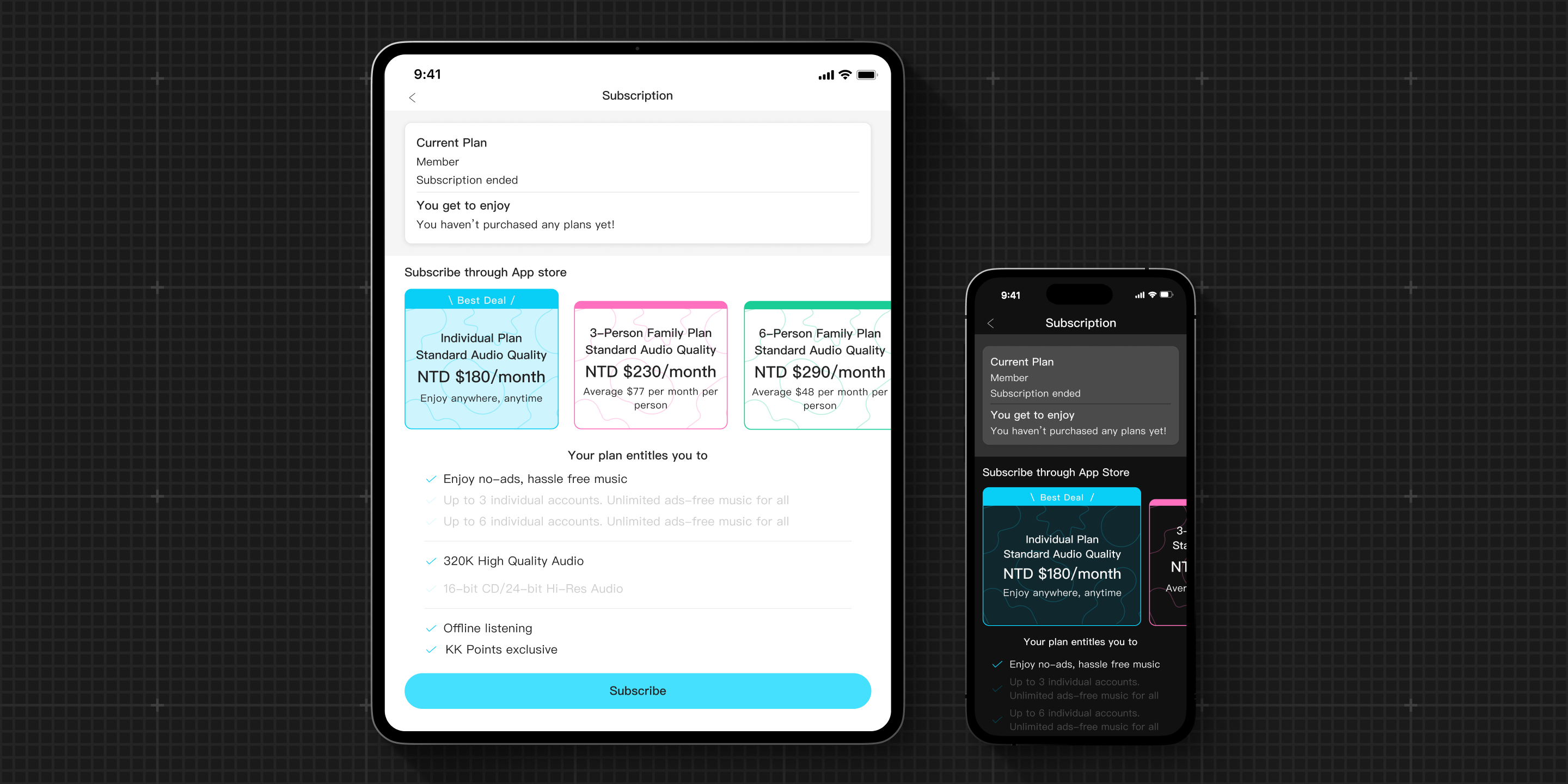 Over 2 million users actively engaged with KKCompany’s music streaming app, yet most subscriptions occurred on the web — signaling that the in-app purchase experience was failing as a conversion channel.